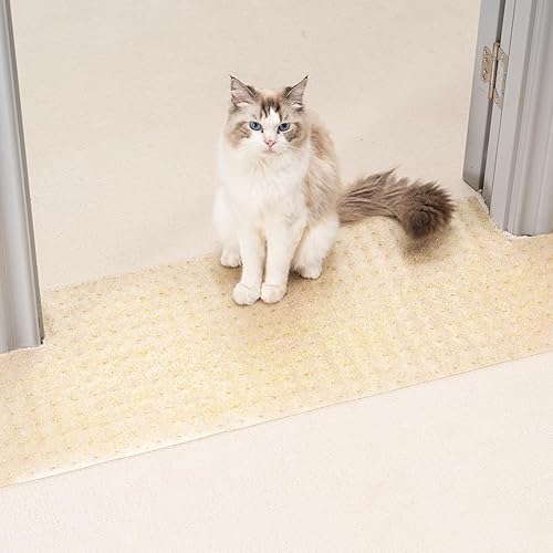 【PROTECT YOUR CARPET FROM SCRATCHING】Made of durable & recyclable PVC plastic with 0.07in (1.8mm) thickness, effectively stopping cats from scratching and protecting the carpet well.