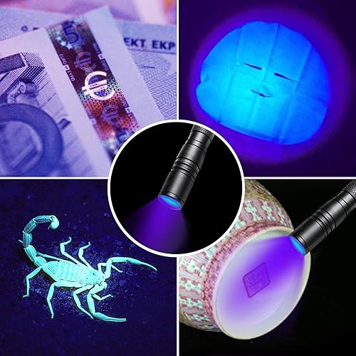 【WATERPROOF & SMART】IPX4 rating of this UV blacklight, best using for either indoor or outdoor application.The portable pen flashlight is built of high quality aluminum alloy. Skid-proof, waterproof, explosion-proof and shockproof.