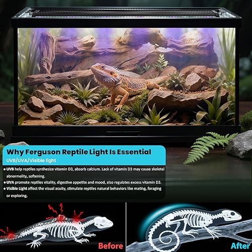 Excellent Heat Dissipation: Made of aluminum alloy, integrated design, offering excellent, fast heat dissipation and good rigidity, never get overheated. Upgraded technology to ensure stable UVB output, low degradation and longer-lasting UVB exposure. Achieve more than 20,000 hours longer lifespan. 3-way installations: come with accessories pack, easily install on the terrarium’s mesh cover, hang under the terrarium’s mesh, or fix on the wooden board. Versatile setting options to fit different reptile's. Do not immerse in water.
