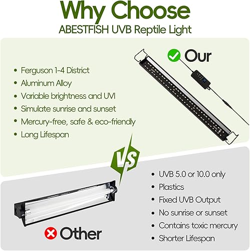 【Efficient and Durable】UVB lamps are made of aluminum alloy material, offering better texture and faster heat dissipation than plastic lamps,ensuring high-efficiency output. Your reptiles will always have reliable lighting.Our LED lights are suitable for a variety of reptiles and amphibians, including chameleons, geckos, turtles, and more, making them an ideal choice for diverse pet owners.