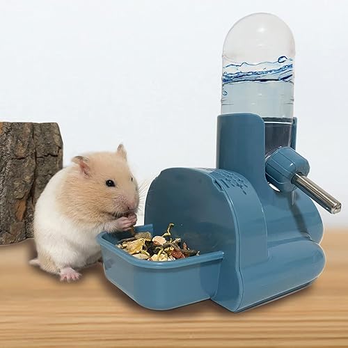 【3 in 1 design】This small animals water bottle suitable for hamster, dwarf hamster, small mice, rats, gerbil and other little animals, includes automatic drinking bottle, hideout base and food container. The multifunction water bottle greatly saves space.