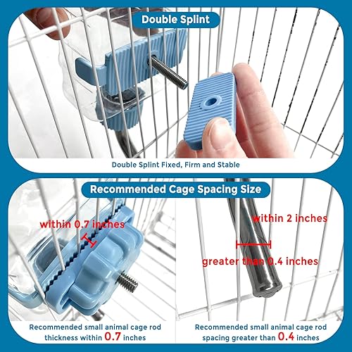 【Easy to Clean】Barrel body of the water bottle is easy to remove from the cage, which is convenient for your daily replenishing water and clean. Recommended cleaning once a week.