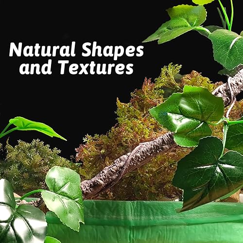 Realistic Reptile Plants: The surface features reptile climbing branch textures, making your pets feel like they are in nature, allowing them to climb or hide freely for endless fun. The lifelike fake leaves can be easily adjusted to any position, creating a customizable and natural hide habitat for your amphibian