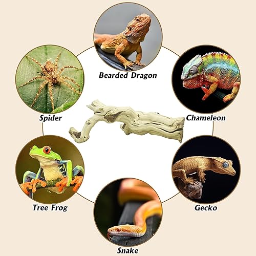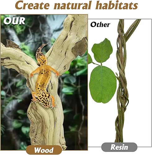 100% Wood----You will receive 2 reptile tree branches made of natural grape wood with untreated surface, you can simply wash and sand them after you receive them and dry reptile branch in the sun before using them to ensure a healthy and comfortable environment for your reptiles