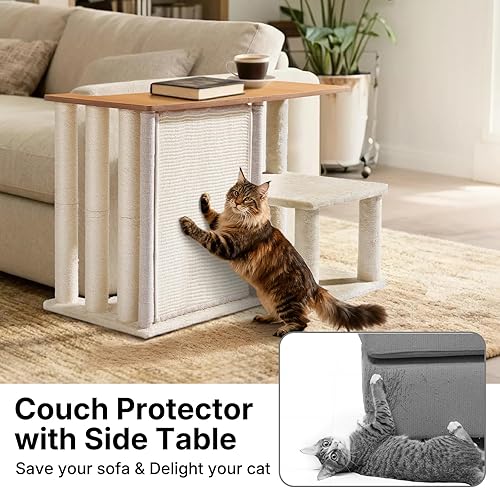 Multi-Functional Couch Protector with Side Table: This cat couch protector doubles as a chic side table, offering a dedicated cat scratching post and scratch pad to keep your sofa claw-free. Perfect for homes where style meets pet-friendly function