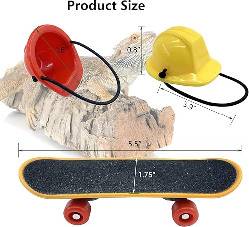 【Cool Design】We use the vivid T-Rex wings to replace old bat wings, let your bearded dragon look like a domineering dinosaur. Put the helmet on your lizard's head, the red one makes your lizard look like a fireman, the yellow one makes it like a building worker, matching a cool mini scooter, very funy.