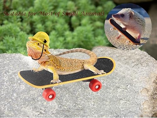 【Adjustable Size】The lizard helmet hat is 0.8"*1.4"*1.6". The mini scooter is 5.1"*1.6". There are 3 sizes lizard harness in every package. S: L*W is 3.5"*1.2''; M: L*W is 4.1*1.8''; L: L*W is 5.1*2.4''. We can move the position of the button that is fitted on the lizard leash to adjust the size to meet different shape and different age lizards.
