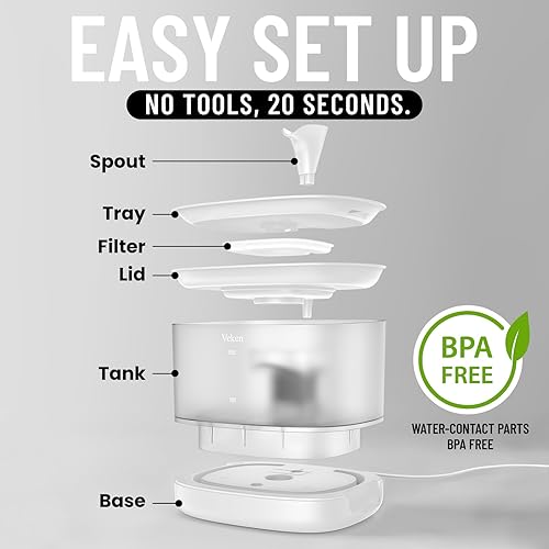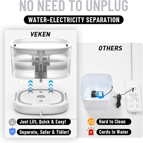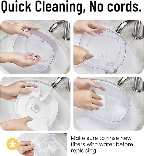 Advanced 5-Stage Filtration: Our fountain features a 5-stage filtration system with upgraded materials, including silver, composite scale inhibitors, and activated carbon. This combination ensures your pet has fresh and pure water for up to 3 weeks. Note: Clean the filter and the fountain every 2 weeks to prevent debris buildup that may lead to overflow.