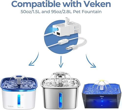 The replacement pump is ONLY compatible with the 50oz and 95oz Veken Pet Fountain.