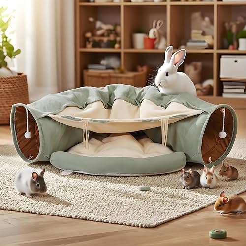 PERFECT SIZE:The spacious tunnel system is designed to offer ample room for small pets to explore, play, and hide, all while ensuring maximum comfort. Its generous dimensions make it a favorite spot for rabbits, bunnies, and kittens to unwind.