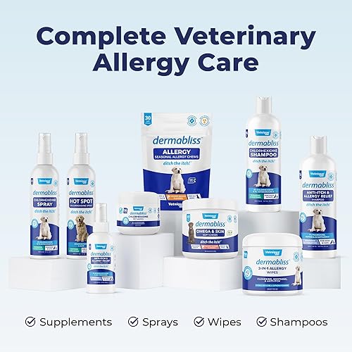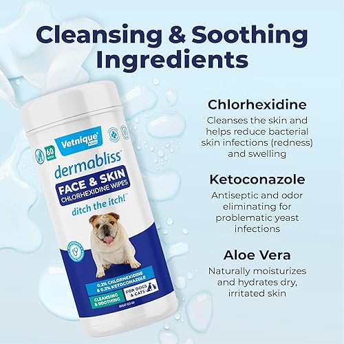 SAFE FOR DOGS & CATS - Dermabliss Chlorhexidine Grooming products are safe to use on dogs and cats of all ages. For complete support, use with Dermabliss Chlorhexidine Wipes and Shampoo, with daily Dermabliss seasonal allergy supplements.