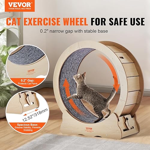 Versatile Cat Wheel: Featuring a locking mechanism to keep it steady, this cat running wheel is adaptable for interactive cat play, as a cat resting place, and as a furniture piece. It can be set to a stationary mode for cats running and spinning, allowing them to climb and take a nap. Cats can also frolic, chase, and keep themselves entertained!