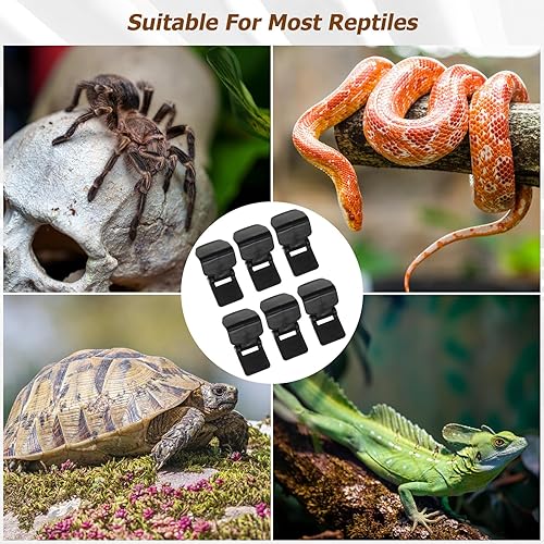Material: Terrarium cover clips are well- made of plastic and sturdy materials, safe and practical aquarium clips for long- lasting using time, reptile lid clips color is black