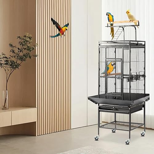 Robust Construction for Longevity: Crafted with premium wrought iron and a corrosion-resistant coating, this large flight cage resists chewing, scratches, and wear, retaining its polished look through years of daily use.