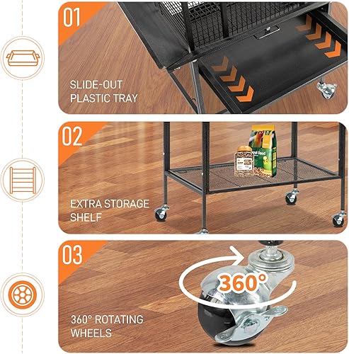 Convenient Mobility: Equipped with rotating wheels for easy mobility, this cage can be effortlessly moved around. The detachable stand allows for flexibility in placement, whether indoors or outdoors.