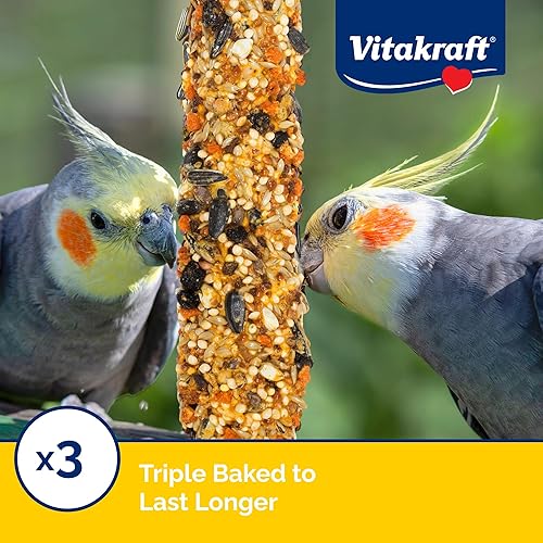 QUALITY INGREDIENTS: Baked with select millet seed, sunflower seed, peach, and apricot, making these cockatiel bird toys the perfect supplement to daily cockatoo food.