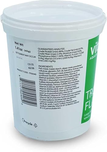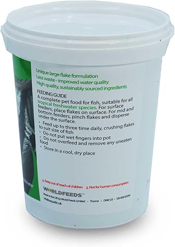 Each of our flake diets are made large for feeding diversity. This enables you to crush the flakes to suit the size and number of fish in your aquarium.