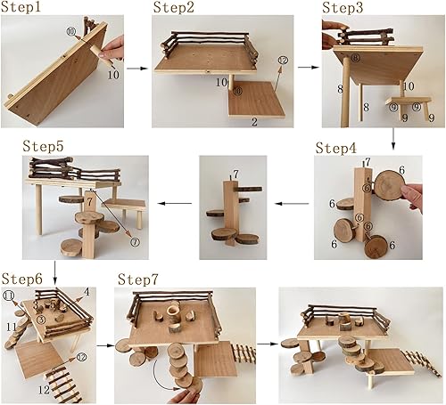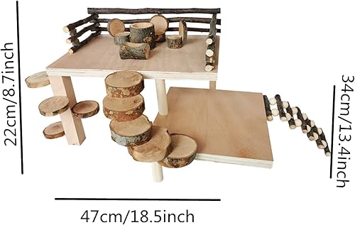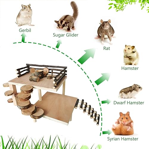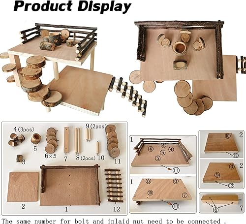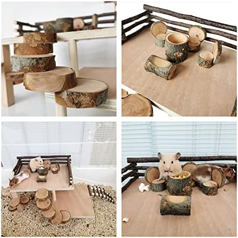 【Ingenious Design】 - This Hamster climbing chewing toys consist of wooden stand, wooden climbing ladder, food bowl, wooden railing and wooden platform. The undulating arrangement effectively exercises hamsters. The pet ladder toy is suitable for hamsters, Syrian hamster, dwarf hamsters, gerbil and other small rodents.