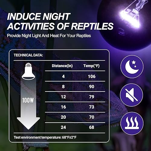【Effective Output】The night light made of purple glass that has good heat transfer, it can provide heat for your pet without disturbing the sleep cycle to ensure that the reptile stays properly heated at night, inducing the reptile's nocturnal activity instinct.