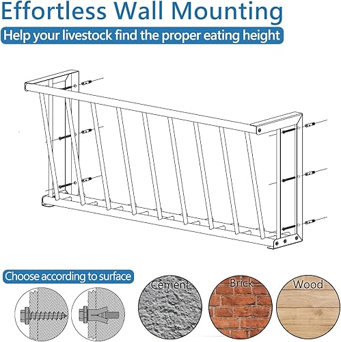 Premium Material: Constructed of durable carbon steel, our wall hay rack can be used for years to come. It is rust-proof, non-deformed and BPA-free, being friendly to animals' healthy growth.