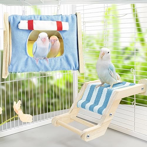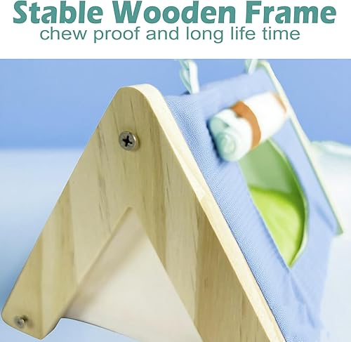 Premium Wooden Frame & Chew-Proof Design --Crafted with solid wood structure and reinforced stitching, this bird sleeping hut resists deformation and withstands relentless chewing. The rigid wooden frame prevents sagging, ensuring long-term safety—no more collapsed bird hammocks!
