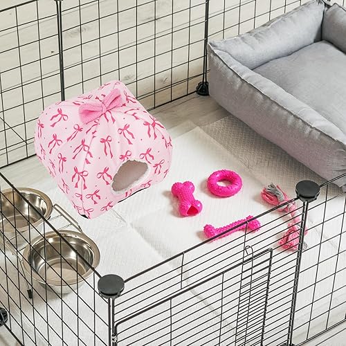 DELICATE DESIGN: Our guinea pig house bed is designed with bow patterns against the pink background, cute and delicate, to add a stylish touch to the pet hideout