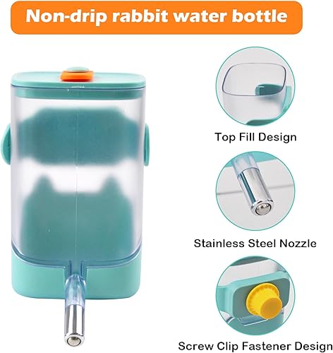 Safe Material:Rabbit hanging water bottle are made of food-grade plastic and stainless steel,with a stainless steel spout and ABS and PP body,so your animals can drink every sip of water with confidence