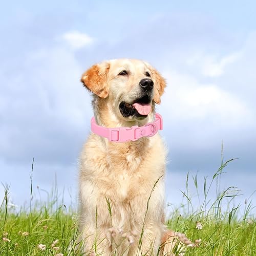 SAFETY MATERIAL: Waterproof dog collar made of high quality rubber coated webbing, soft and comfortable, with adjustable plastic buckle, safety buckle can be quickly and easily attached to the dog leash, upgraded plastic carabiners is strong and not easily deformed, this dog collar that makes the dog comfortable and free.