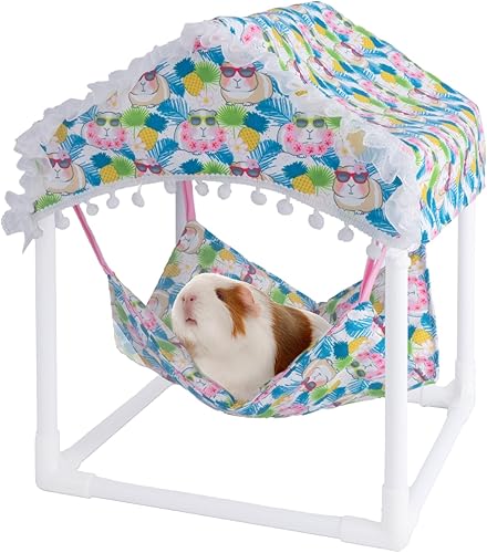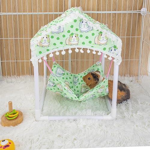 【PERFECT SIZE】Stand: 11.81x11.81x17.72 in, Hammock: 10.63x10.63 in. This guinea pig hammock is sized to fit most small pet cages and small snimal playpens. It can be used by both small and adult guinea pigs.