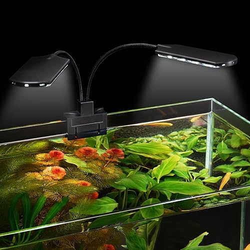 Special Design- This double head light is specially designed for fish tank, which can light up your fish tank and bring brightness for fish. Help plants to thrive and light up for fishes anytime you want.