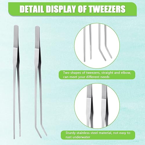Long to keeps hands dry: the size of coral feeder is approx. 11.2 inch/ 28.5 cm, and the other one is approx 17.7 inch/ 45 cm long, helping you arrive at deep and hard-to-reach area, you can feed liquid food to corals, and the tweezers are approx. 10.62 inch/ 27 cm in length, they are good and practical tools for aquarium plants or reptiles
