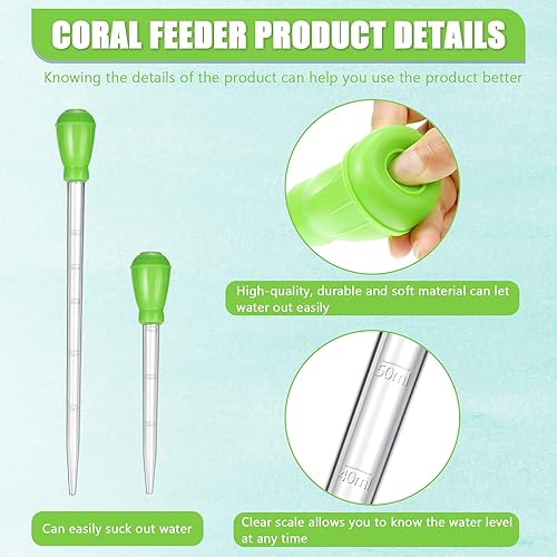 Reliable material and easy to use: made of quality plastic and rubber material, the coral spot feeder is safe for fish and corals, clearly printed with 10ml, 15ml, 20ml, 30ml, 40ml and 50ml measurements for easy to read, ensuring that you know how much you are dispensing and prevents overfeeding; While the aquarium feeding tweezers are made of stainless steel with coating, durable and not easy to be rusted under water