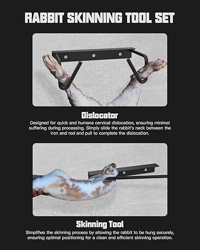User-Friendly Operation: Simply attach the dislocator to the wall, slide the rabbit's neck between the iron and rod, and pull to cervical dislocation of rabbits. The skinning tool is designed to facilitate hanging and skinning small animals, ensuring optimal positioning for a clean process.