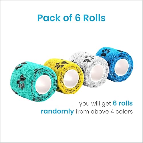 [SIZE & COLOR]: 2 Inch x 5 Yard (Stretched), Pawprints A, 2 of Each Color (Blue, Green, Yellow), 6 Rolls.