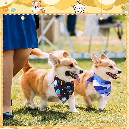 Varied Designs: the dog bandana set encompasses a wide array of elements such as polka dots, camouflage, animal stripes, palm trees, waves, animal prints, grids, dinosaurs, flowers, planets, fruits, ice creams and more; This variety allows pet owners to choose the proper bandana to match their pet's personality or the theme of an event