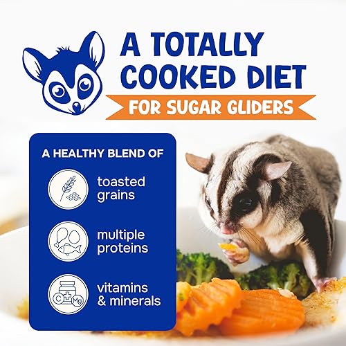 TOTALLY COOKED FORMULA: A totally cooked diet with toasted grains, natural oils, and added fiber for optimal digestion. Promotes vitality, muscle development, and long-term well-being for sugar gliders of all ages.