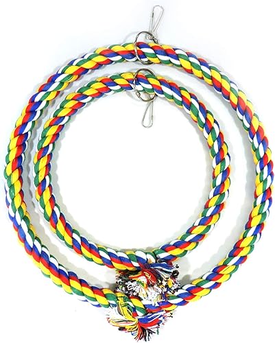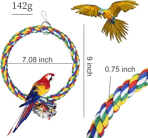 Cotton Rope Swing: The birds can swing on the round cotton rope swing, and you can also match multiple round rings for your pet to climb or exercise. Just like jumping around in a tree, they will find it very interesting