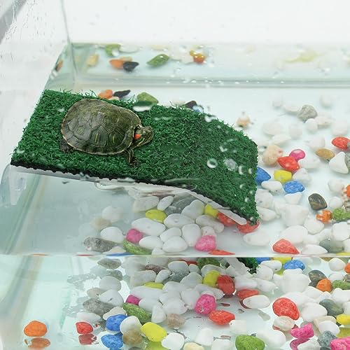 【Slope Design】This basking platform has a climbing slope that encourages them to climb for exercise. The slope is topped by a gentle lawn, nice for little turtles to sunbathe on it.