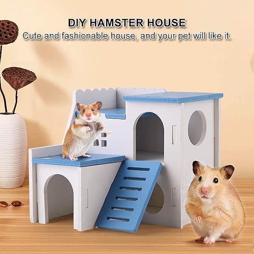 WishLotus Hamster House, Luxury Small Animal Hideout with Funny Climbing Ladder Exercise Toys Two Layers Hut for Dwarf Hamster, Rat, Gerbil, Mouse, Small Syrian Hamsters (Blue)