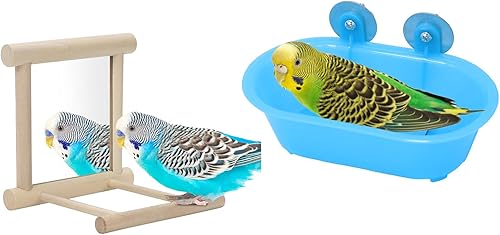 Comment on "Wontee Bird Bath Parrot Bathing Tub Bird Mirror with Perch Toys for Budgies Parakeets Cockatiels Lovebirds Finches Canaries (Blue (A))(Blue (B))"