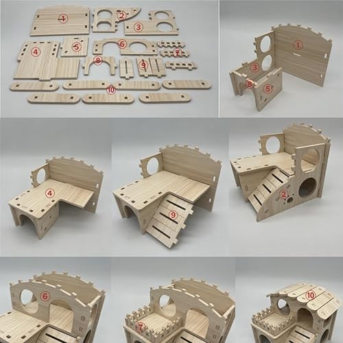 Detachable Parts: All parts are detachable, allowing you easily check any perishable foods in the storeroom and remove them as needed. Disassembling or assembling the house according to different temperatures, more conducive to hamster breathing. To ensure that the house is stable, use a hammer to assist in the installation if necessary.