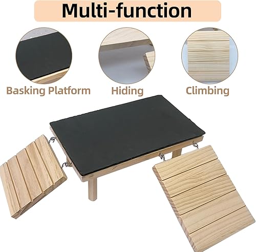【Multi-function Reptile Basking Platform】The bearded dragon basking platform can provide reptiles with climbing, hiding, resting, playing and basking in the sun, which can provide a safe and comfortable free movement area for your pet. Each bearded dragon hideout is paired with two climbing ladders, and the gentle slope and non-slip design with grooves make it easy for your pet to crawl.