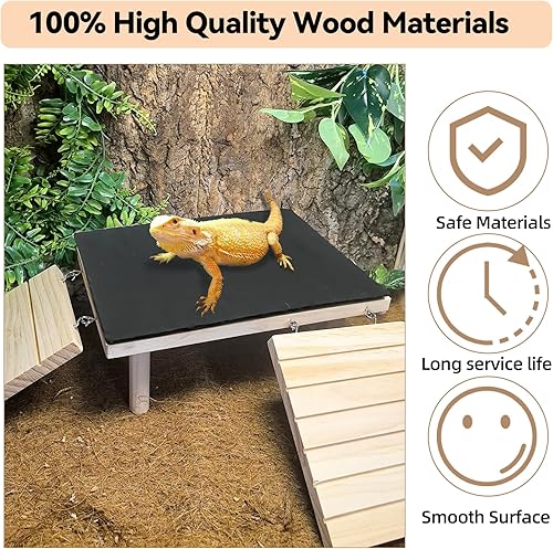 【Safe and Durable Materials】The whole bearded dragon basking platform is made of 100% high quality wood materials, without any synthetic materials, long service life. The design simulates the natural habitat to ensure the comfort of the use process. After strict processing process, the surface is very smooth, which is your safe and reliable choice.