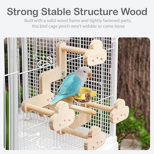 【Stable Frame & Reliable Construction】Built with a solid wood frame and tightly fastened parts, this bird cage perch won’t wobble or come loose. Your feathered friends can climb, play, and rest safely day after day. A highly strong bird cage accessory designed for years of fun!