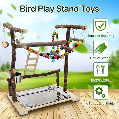 Natural Wood Bird Play Stand: Bird stands for parrots made of natural fruit wood which is abrasion resistant to grasp, can chew, is very safe for your birds. Give your bird a great climb training spot to keep fit