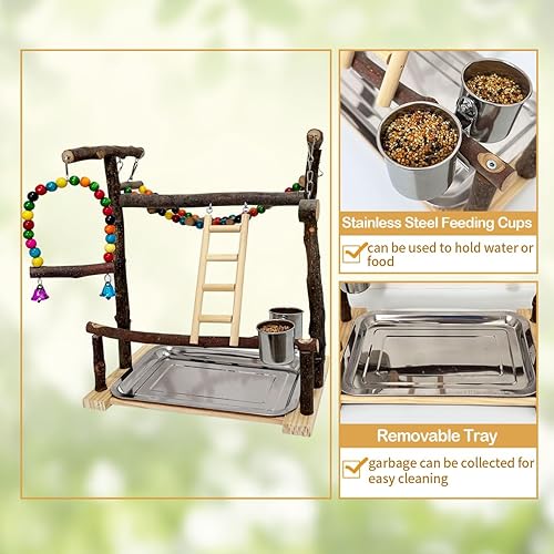 Fun Bird Stands Playground: Our bird stand set contains colorful swings, ladders, two feeding cups and a removable tray. Provide a comfortable place for playing and exercise for your pet that stimulation for your bird mentally and physically
