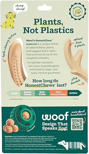 Plant-Powered, Petroleum-Free Dog Chew: Most durable dog chews are just petroleum in disguise. We believe your dog deserves better, and that’s why we created HonestChew. It’s made with food-grade, plant-based materials like cellulose (a tough natural fiber found in plants) and real antler bone for satisfying chew time and gnaw-worthy flavor.