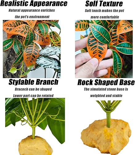 REPTILE TERRARIUM DECOR PLANTS - This reptile tank decor plant is good for bearded dragon, crested gecko, lizards, tortoise, hermit crab, tree frog, chameleons, corn snakes, ball python and other reptiles and amphibians.