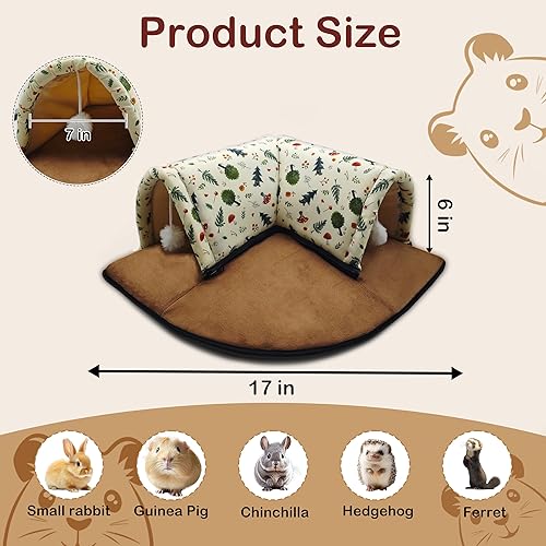 [Multifunction]: This cozy guinea pig hideaway features a warm bed and an L-shaped tunnel.it includes dual openings and two interactive balls. After playtime, pets can easily relax and rest.