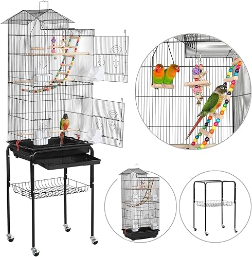 Convenient moving: This parrot cage comes with a stand that sits on four 360° swivel smooth rolling casters for effortless moving. The detachable mobile stand can be easily removed if needed
